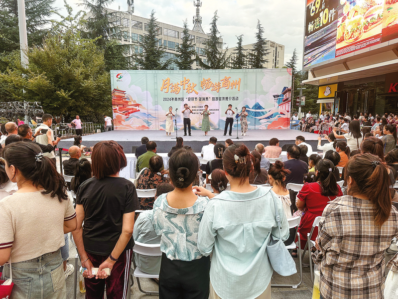 商洛萬(wàn)達(dá)廣場(chǎng)前的中秋文藝演出吸引眾多市民駐足觀賞