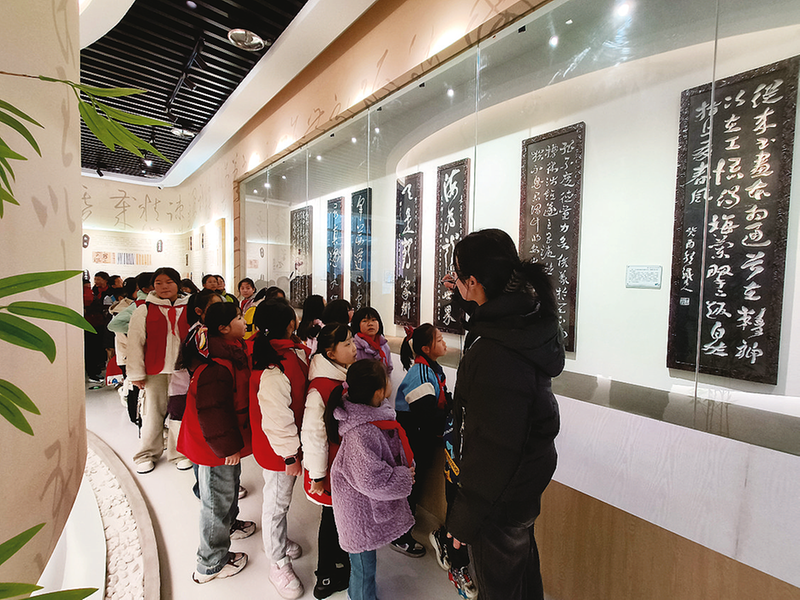 “我們現(xiàn)在站的地方就是以國(guó)家級(jí)非物質(zhì)文化遺產(chǎn)‘倉(cāng)頡傳說(shuō)’為核心,打造的谷雨祭倉(cāng)圣核心地標(biāo)、漢字源流及現(xiàn)當(dāng)代書法碑刻博覽中心。”在倉(cāng)頡文博館,講解員雷苗苗向小記者們介紹道。