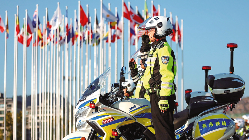2024年8月24日,商洛鐵騎大隊在商州區(qū)秦嶺博物館廣場舉行賽事安保演練和安保誓師儀式,確保2024國際排聯(lián)沙灘排球U19世界錦標賽交通安保任務(wù)的順利完成。 (本報通訊員 陶 方 攝)