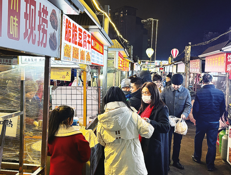 在春節(jié)這個(gè)闔家團(tuán)圓的日子里,不少商戶也緊緊抓住了節(jié)日的客流熱度。市區(qū)幾處夜市的攤主更是提前忙碌開來,他們備足各種物料,以滿足春節(jié)期間大批逛街食客的需求。今年42歲的邵燕妮與丈夫王永剛是商州區(qū)麻街人,在市區(qū)民樂路北口與民居路西段附近的商州夜市經(jīng)營著一個(gè)攤點(diǎn),夏季賣鹵菜、冬季賣冰糖烤梨、烤紅薯。蛇年春節(jié)大年初二,邵燕妮就開始出攤,一晚上能賣出80多份冰糖烤梨。邵燕妮說:“過節(jié)在家也是閑著,出攤還有收入。節(jié)日人多,能多賺一些。”