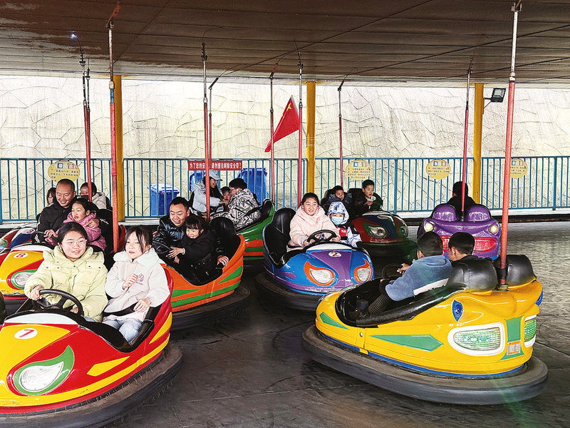 過春節(jié),游樂場成了孩子們歡度新年的一個(gè)重要場所。大年初一,位于金鳳山公園的商州區(qū)威斯尼兒童樂園迎來了第一個(gè)客流高峰,碰碰車、摩天輪、過山車、旋轉(zhuǎn)木馬……每一個(gè)項(xiàng)目前都排著長隊(duì),笑聲、歡呼聲此起彼伏。市民牛娜娜與丈夫帶著自己家的兩個(gè)孩子和哥哥家的孩子一起在游樂場里體驗(yàn)各個(gè)娛樂項(xiàng)目。“春節(jié)期間游樂場孩子多,感覺更熱鬧一些??粗⒆觽兺娴媚敲撮_心,花費(fèi)幾百塊錢很值得。”牛娜娜說。