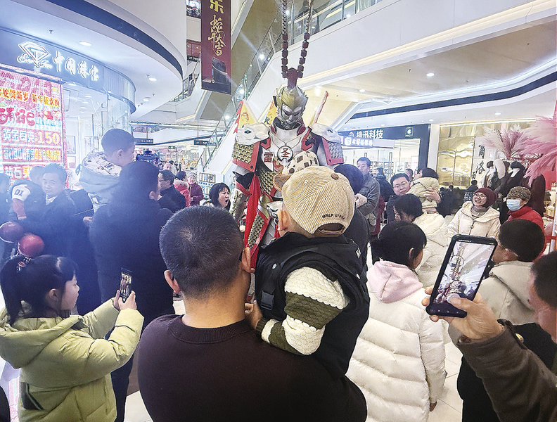 商場內(nèi)機(jī)甲大圣吸引市民圍觀