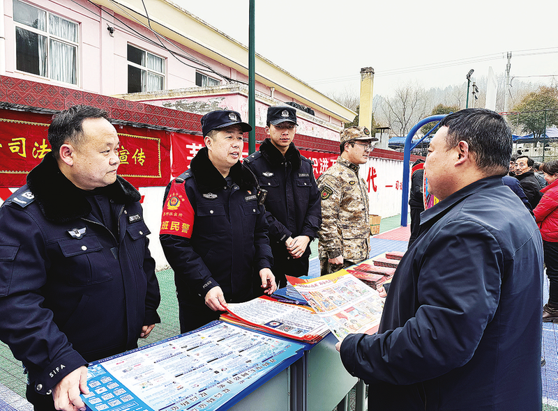 1月23日,鎮(zhèn)安縣公安局茅坪派出所聯(lián)手縣司法局茅坪司法所、縣農(nóng)商行茅坪支行等部門在茅坪中心廣場(chǎng)集中開展反詐宣傳活動(dòng)。 (本報(bào)通訊員 尹 鋼 攝)