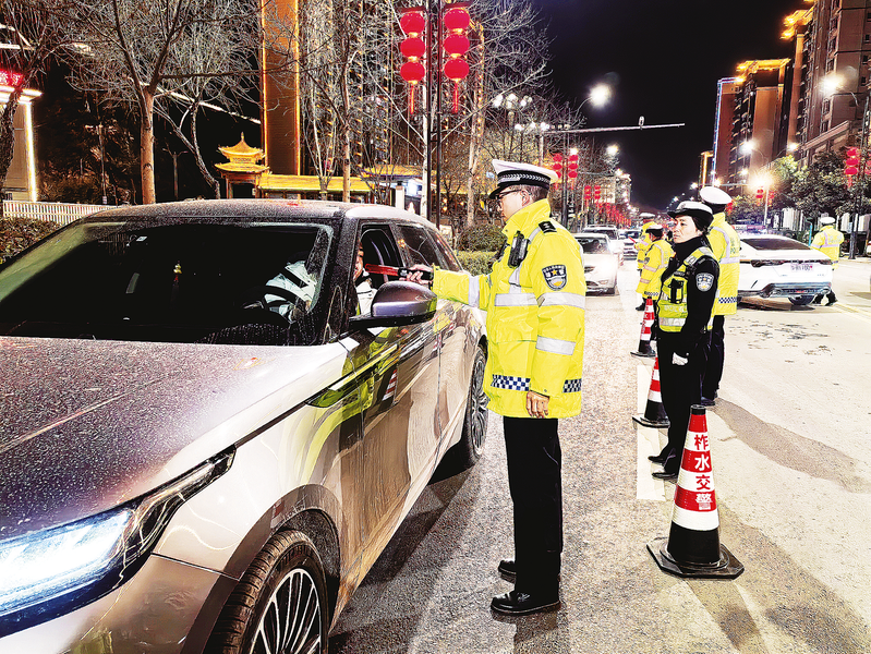 2月2日,柞水縣交警大隊(duì)民警在迎賓大道查處酒駕醉駕違法行為。(本報(bào)通訊員 涂思陽 攝)
