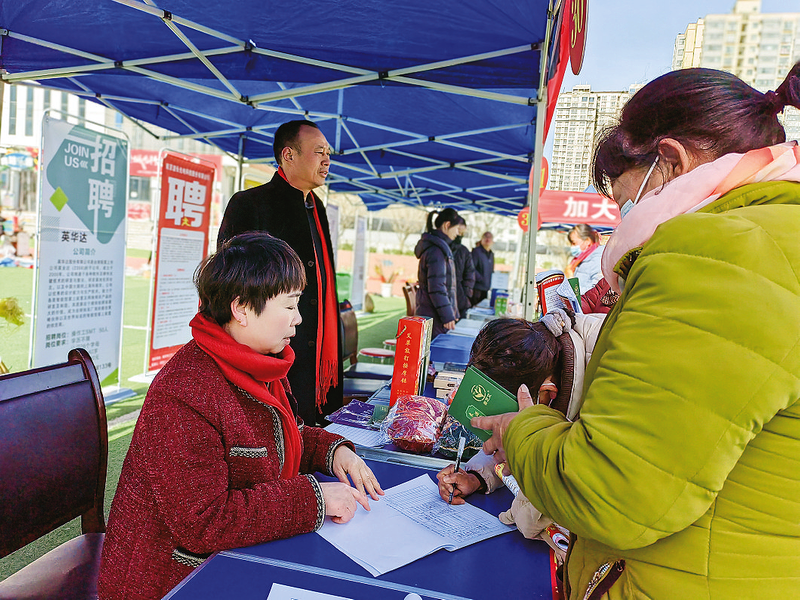 在當(dāng)天的招聘會(huì)上,許多人成功找到了滿意的工作。城北社區(qū)居民曹永杰與南京某汽車座椅廠達(dá)成意向,“月薪6800元起還管食宿,專車直達(dá)上崗,效率太高了!”他說(shuō)。