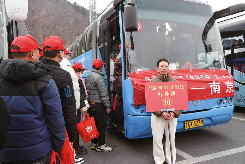 2月6日,丹鳳縣務(wù)工人員乘坐前往南京的專車,踏上返崗之旅。
