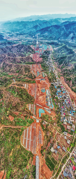4月10日,正在緊張施工中的西十高鐵西嶺隧道口至商洛西站全段。