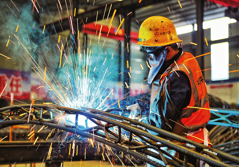 4月9日,施工人員認(rèn)真專注地為西嶺隧道加工焊接鋼拱架。