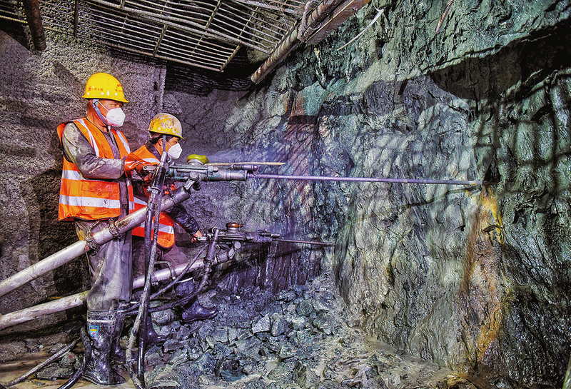 4月8日,施工人員在西嶺隧道內(nèi)進(jìn)行鉆孔作業(yè)。