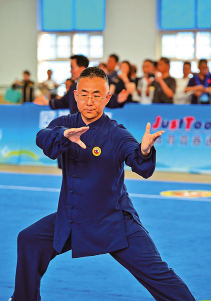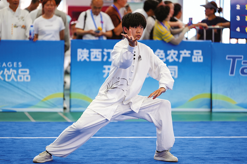 △青年選手心無旁騖地展現(xiàn)出太極的剛?cè)嵯酀?jì),在擁抱健康身心的同時,沉浸式感受中國傳統(tǒng)文化的獨特魅力。
