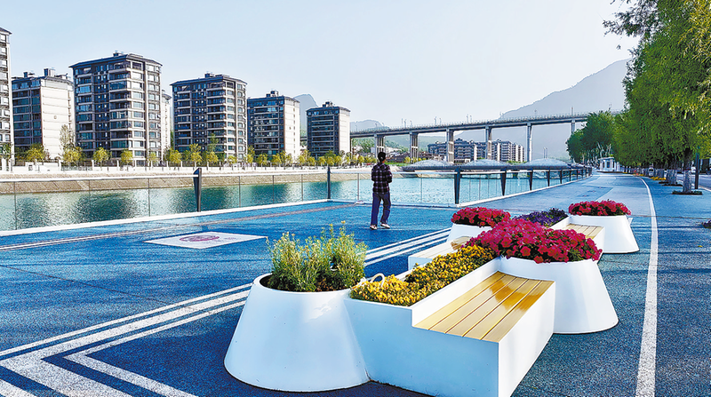 5月7日,市民在丹江健身步道上晨跑。
