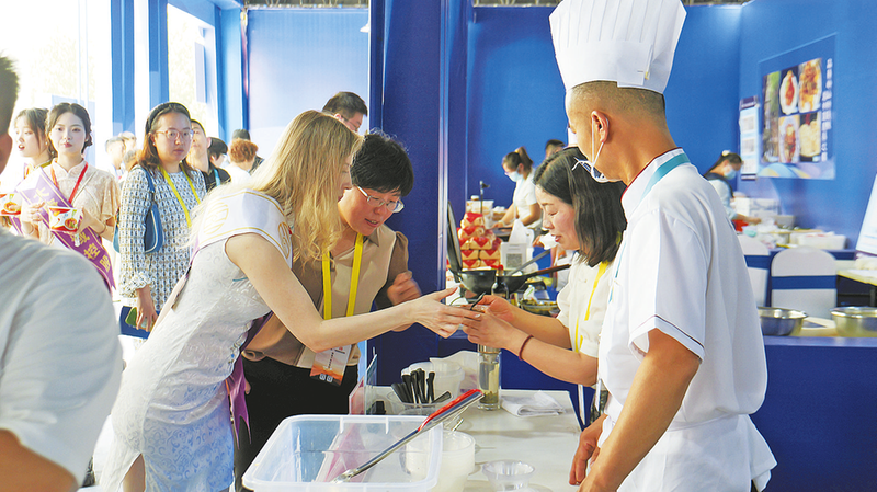 中午時分,陜菜美食文化交流區(qū)香氣四溢,商洛的“味覺密碼”在此揭曉。在第九屆絲博會陜菜美食文化交流活動期間,我市設(shè)立330平方米的美食展區(qū),來自洛南縣民生食品科技開發(fā)有限責(zé)任公司、商洛市國際會議中心、金悅福酒店、佑青山小院等14家優(yōu)質(zhì)餐飲企業(yè)的工作人員在現(xiàn)場制作商州菌菇小火鍋、洛南豆腐、丹鳳牛筋面、核桃餅等地方特色小吃,供游客品嘗、購買,集中展示商洛秦嶺山珍特色餐飲。