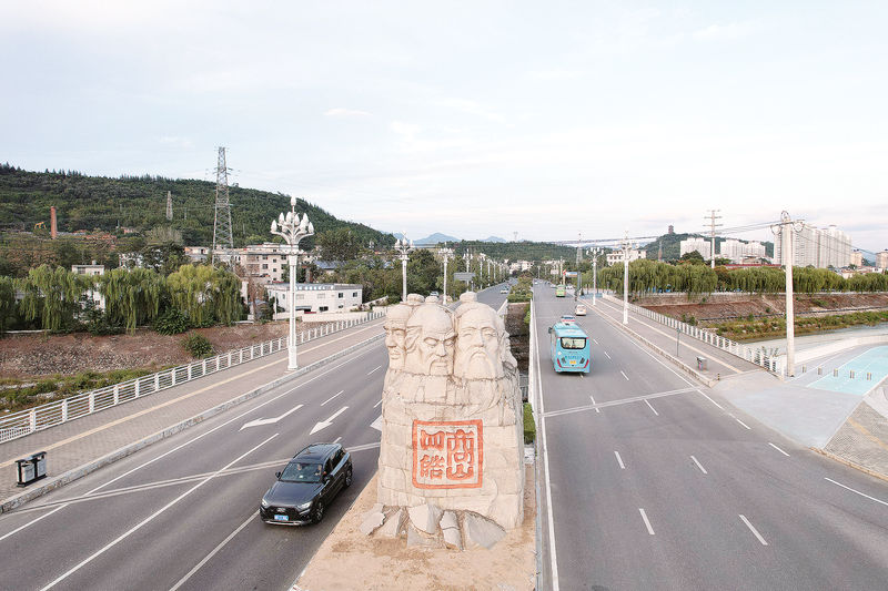 在市中心城區(qū)迎賓大道,古樸莊嚴(yán)的商山四皓雕塑巍然矗立,彰顯商洛深厚的文化底蘊。