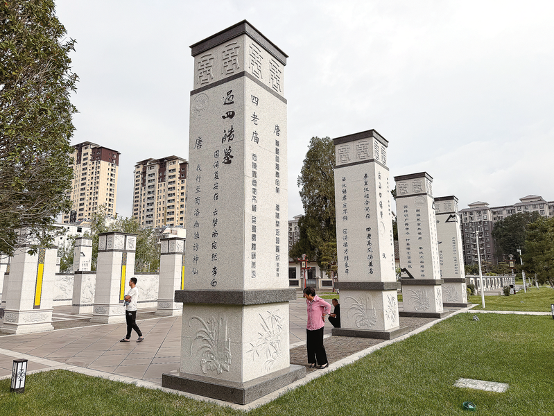 △市中心城區(qū)四皓公園內(nèi),古詩詞石刻隨處可見。市民或漫步賞景或駐足品讀詩文,在充滿文化氛圍的環(huán)境中享受休閑時光。