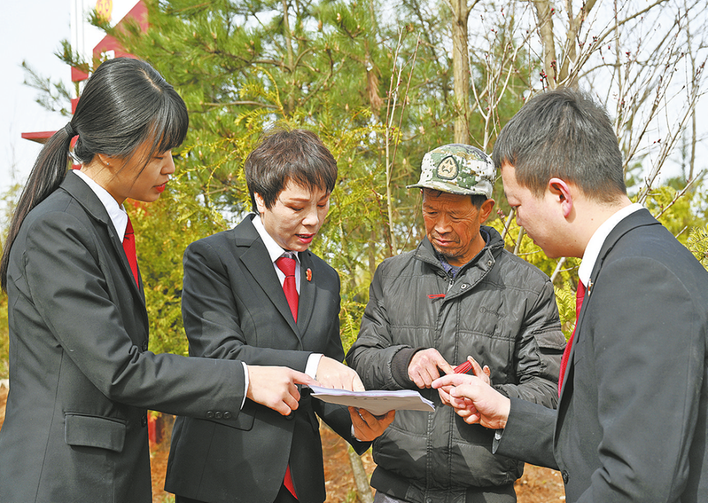 除做好案件審理工作外,周夢琳(左二)還擠出時間向群眾宣傳秦嶺生態(tài)保護的意義。 (資料圖片)