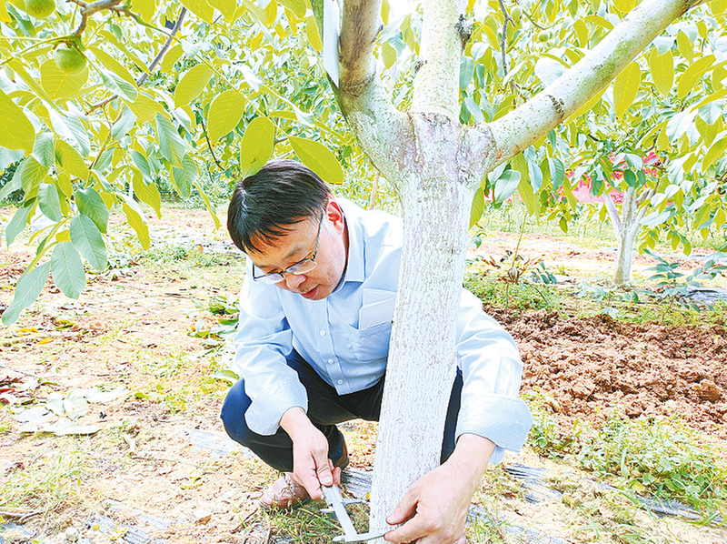 我是商洛市林業(yè)科學(xué)研究所的張治有,自擔(dān)任陜西天宇潤澤生態(tài)農(nóng)業(yè)有限公司科技副總以來,結(jié)合自身優(yōu)勢,聚焦企業(yè)創(chuàng)新發(fā)展需求,扎實開展科技服務(wù)、技術(shù)創(chuàng)新等工作,取得較好成效。一是認真開展科技服務(wù)。針對核桃產(chǎn)量低、品質(zhì)良莠不齊等問題,深入生產(chǎn)一線,蹲守在基地,向企業(yè)員工傳授整形修剪、科學(xué)施肥、病蟲防控、霜凍預(yù)防等栽培管理技術(shù),先后開展培訓(xùn)6次,培訓(xùn)員工及周邊群眾330人次,錄制核桃科普專題片3個,發(fā)放技術(shù)資料360冊,培養(yǎng)技術(shù)能手11人,實施核桃科管860畝,核桃產(chǎn)量提高23%。二是積極申報科技項目。幫助企業(yè)策劃申報科技項目3個,成功獲批2個,其中三秦英才特殊支持計劃創(chuàng)新創(chuàng)業(yè)團隊項目獲得資金100萬元。三是創(chuàng)新引進優(yōu)良品種。面對普通核桃同質(zhì)化競爭激烈現(xiàn)狀,引進馬罕、波尼、金華等12個薄殼山核桃新品種,并組織開展豐產(chǎn)性、抗逆性試驗,計劃篩選出2—3個適宜本地的高產(chǎn)優(yōu)質(zhì)品種。四是探索復(fù)合經(jīng)營模式。為提升基地效益,選擇9種適宜本地種植、市場前景良好的中藥材,林間種植中藥材750畝,單位面積經(jīng)濟效益明顯提高。五是努力推進科技合作。與企業(yè)合作實施本人承擔(dān)的省重點研發(fā)計劃“商洛紅仁核桃豐產(chǎn)栽培技術(shù)示范與推廣”項目,建設(shè)紅仁核桃豐產(chǎn)栽培示范園270畝。同時,聯(lián)合西北農(nóng)林科技大學(xué)專家實施省重點研發(fā)計劃“核桃種質(zhì)資源保護利用及輕簡化栽培關(guān)鍵技術(shù)研發(fā)”項目,嫁接核桃新品種13個156株,開展輕簡化栽培關(guān)鍵技術(shù)試驗研究。累計推廣先進技術(shù)7項,制定地方標準3個,申請專利4個,獲得省林業(yè)科技成果一等獎1項。