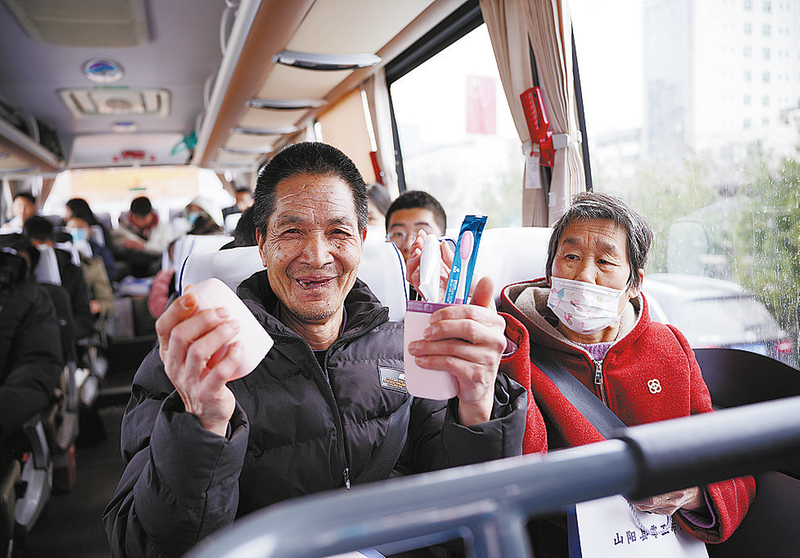 ?務(wù)工群眾手拿“暖心禮包”順利啟程。