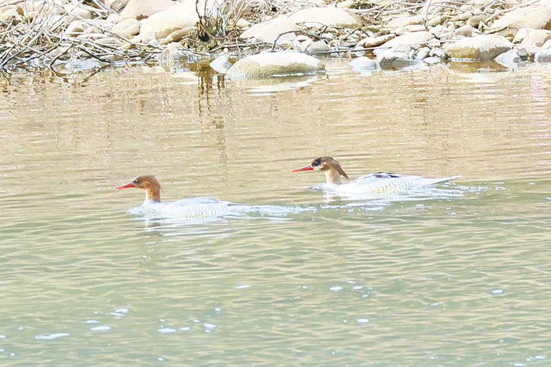 兩只中華秋沙鴨在洛河中自由覓食。(本報通訊員 石 強(qiáng) 攝)