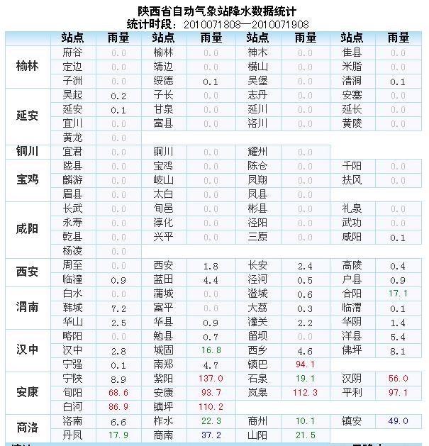 18日08時(shí)-19日08時(shí),陜南有9站出現(xiàn)50毫米以上的降水,其中三地出現(xiàn)大暴雨,分別是紫陽(yáng)137毫米、嵐皋112.3毫米、鎮(zhèn)坪110.2毫米。
