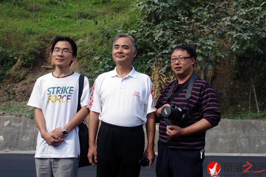市文藝評(píng)論家協(xié)會(huì)副主席張?jiān)床壬ㄓ叶搪鍞z影師劉琰珺先生(右一)與遠(yuǎn)道而來(lái)的客人江蘇省知名書法家楊峰先生(左一)合影