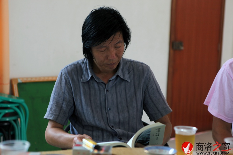 商洛電視臺《商洛全接觸》欄目部部長,制片人馮新勇先生認(rèn)真的看楊賢博老師的贈(zèng)書《古道詩情》