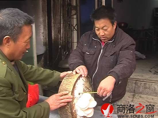 日前,在洛南縣永豐街一個(gè)體餐館的菜墩上長(zhǎng)出一個(gè)大蘑菇,引得不少人跑來(lái)看稀奇。這個(gè)蘑菇打眼一看就是人們?nèi)粘J秤玫钠焦剑涣粢膺€以為是菜墩上放著一簇鮮蘑菇。但是,仔細(xì)看看菜墩表面上布滿的一層白花花、毛茸茸的菌絲,就知道這個(gè)蘑菇是在菜墩上萌發(fā)已久,自然生長(zhǎng)的。
