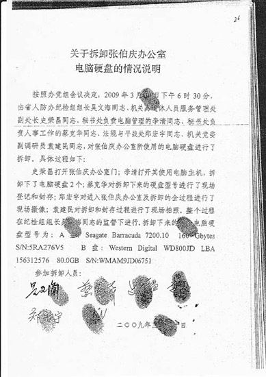 原告提供的《關(guān)于拆卸張伯慶辦公室電腦硬盤的情況說明》表明,張佰慶電腦被人防辦黨組開會決定搜查。