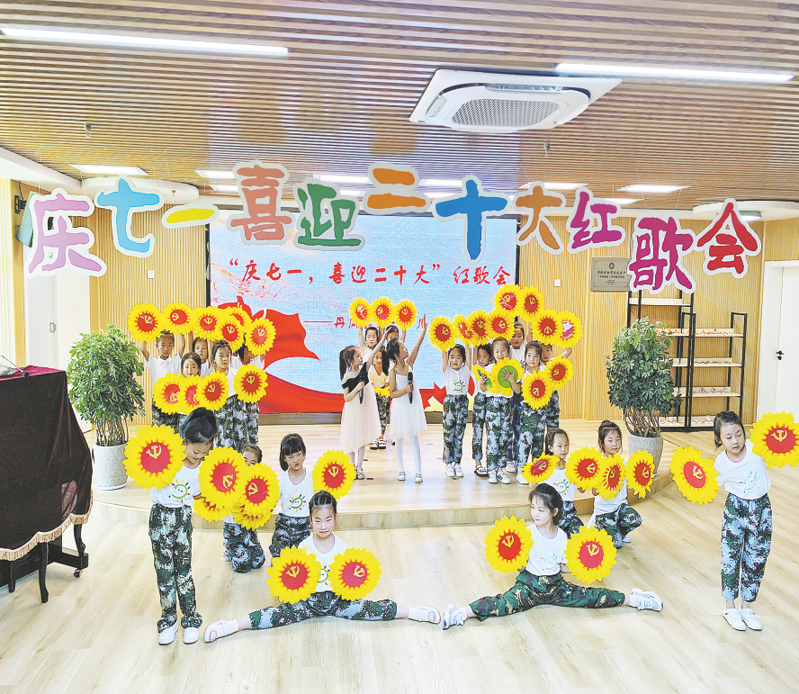 6月28日,丹鳳縣第一幼兒園開展了“慶七一、喜迎二十大”紅歌會活動,為黨的生日獻禮。孩子們把《黨在我心中》《童心向黨》《名字叫中國》等用朗誦和演唱的形式展現(xiàn),將對祖國的熱愛、對幸福生活的感恩之情融入表演中。 (本報通訊員 劉 娜 攝)