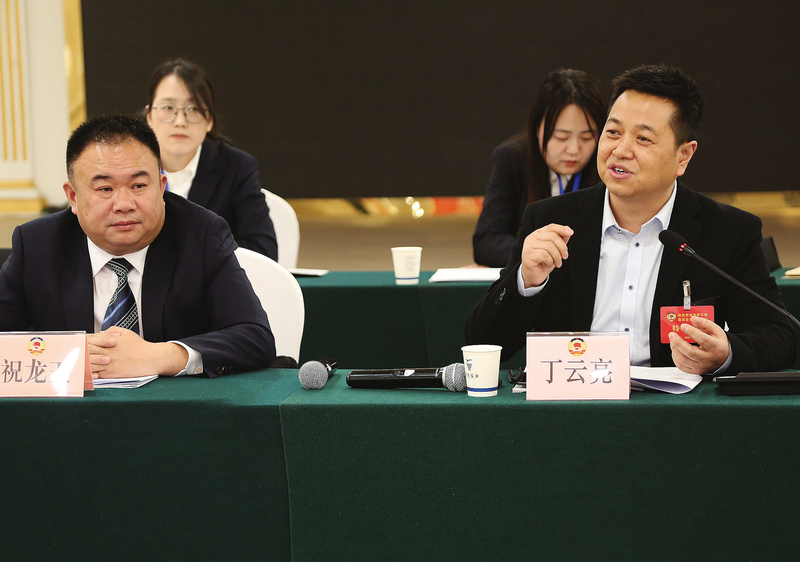 2月3日,工會、共青團、婦聯(lián)、特邀界列席人員丁云亮圍繞學(xué)生、教師減負(fù)與委員們展開討論。(本報記者 王孝竹 攝)