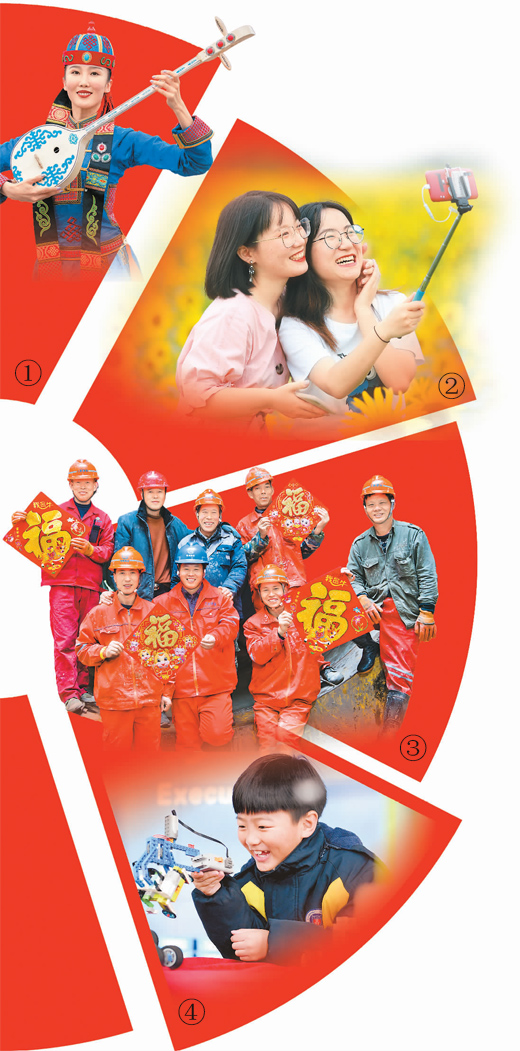 圖③:2021年2月11日是農(nóng)歷除夕,堅守崗位的建設(shè)者們在工地手持“福”字共迎新春。