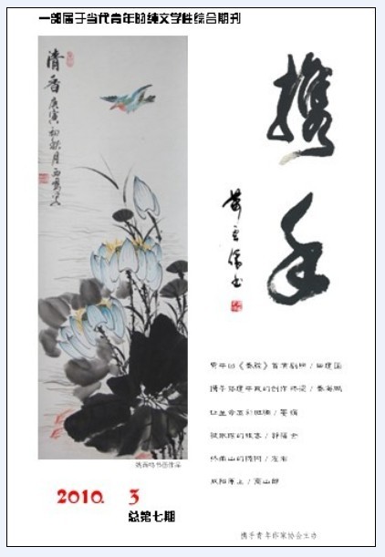 秦豫:作為純文學(xué)性的綜合刊物,它除了要有文學(xué)性、時(shí)代感、青春氣息外還有更重要的責(zé)任,凈化我們的思想,在追求文學(xué)性時(shí)不過于尖刻,在尋找時(shí)代感時(shí)少一些偏激,強(qiáng)調(diào)青春的同時(shí),更多的關(guān)注一些人間情感?!稊y手》仍然是我們放開膽子侃的地方,獨(dú)抒己見的陣地,它等待著你來傾吐心曲,釋放思想火花。我想,這也許是我們的心靈家園吧,在這里,讓我們的靈魂得到凈化,精神得以升華。