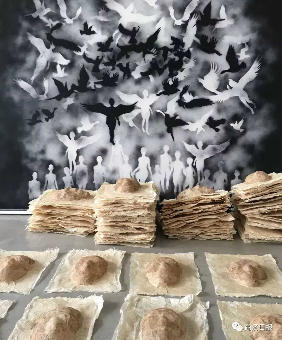 商洛籍藝術(shù)家郭燕用上萬片樹葉創(chuàng)作的《眾生》和《輪回》兩件裝置作品,今年四月在成都市美術(shù)館群展上一亮相,就引起了人們的廣泛關(guān)注和熱議。接著,她的作品《眾生》日前在北京的一處展覽上驚艷亮相,再次引起人們的極大興趣。