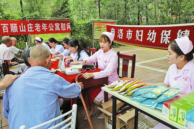 阮紫珍(右三)正在為百順山敬老院老人做義診