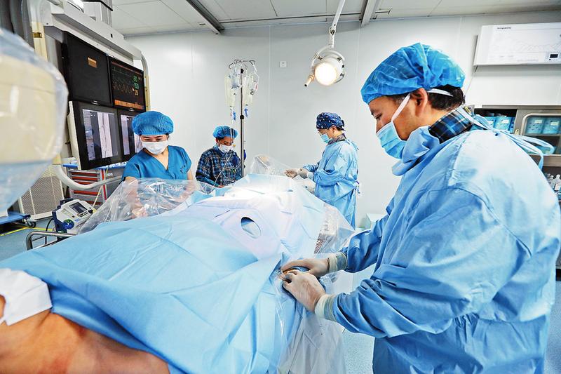 心臟介入診療手術(shù)創(chuàng)傷小、見效快,尤其對(duì)急性心肌梗死在第一時(shí)間內(nèi)搶救生命極為重要。從手腕或大腿根部血管穿刺建立通道,利用導(dǎo)管、導(dǎo)絲直達(dá)心臟血管病變部位,進(jìn)行血栓抽吸、球囊擴(kuò)張或植入支架,從發(fā)病到血管開通時(shí)間越短效果越好。對(duì)冠心病引起的心絞痛,手術(shù)后癥狀可明顯得到改變。