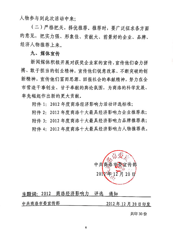 關(guān)于舉辦2012年度商洛經(jīng)濟(jì)影響力評(píng)選活動(dòng)的通知