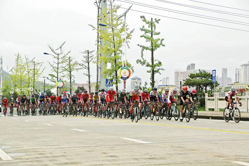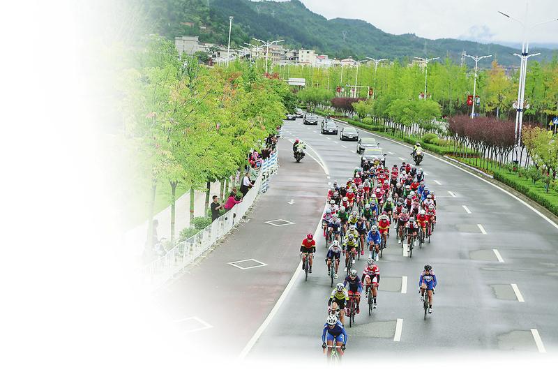 女子個人賽距離終點(diǎn)33公里處,領(lǐng)先選手沖刺。(記者王孝竹攝)