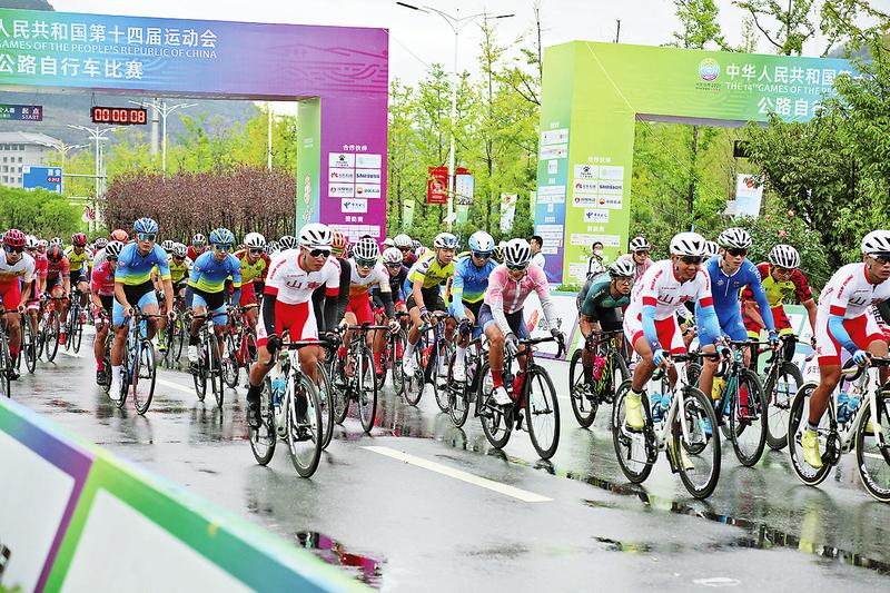 十四運(yùn)會公路自行車比賽男子個人賽決賽 天津隊(duì)選手張長晟奪冠 本報(bào)訊(記者謝非黨率航)9月26日,十四運(yùn)會公路自行車比賽男子個人賽決賽在雨中完賽,來自天津隊(duì)的張長晟奪得該項(xiàng)目金牌?! ?點(diǎn)30分,參加男...