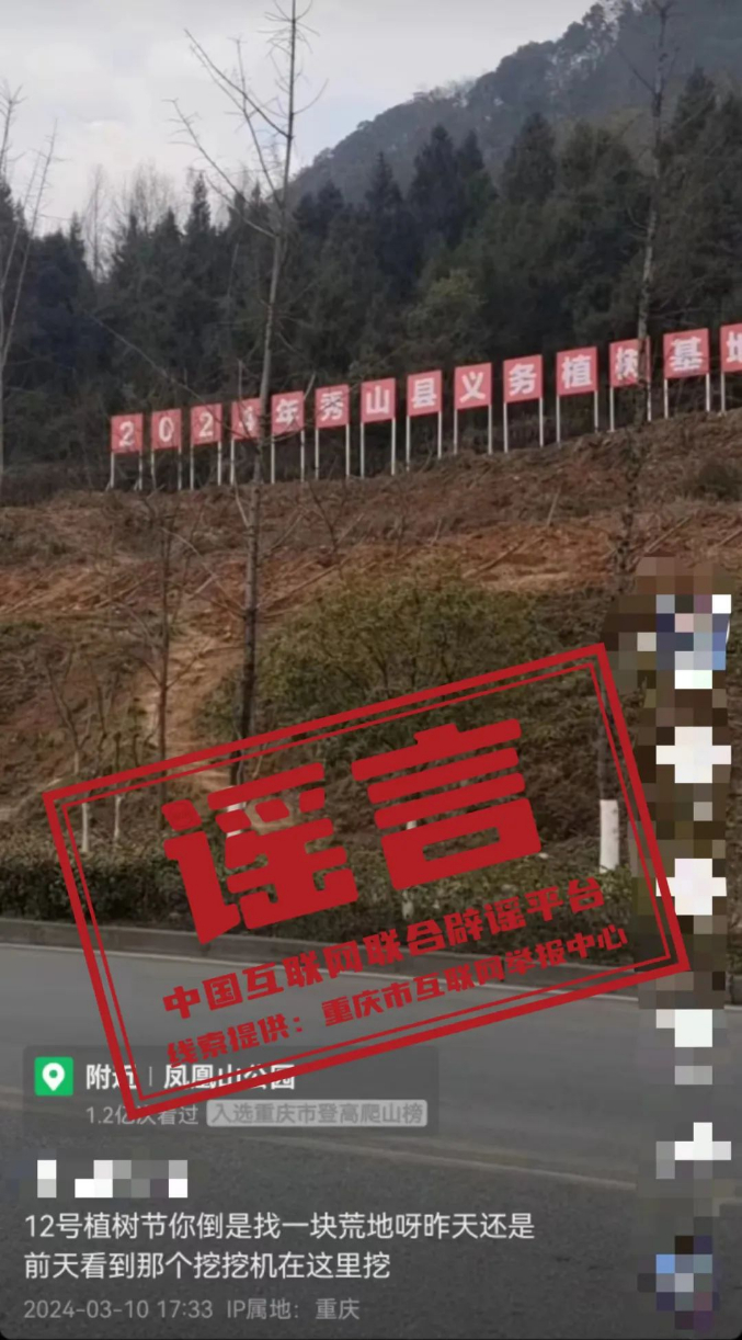 謠言:重慶市秀山縣鳳凰山公園把原有樹木挖了來辦植樹節(jié)?