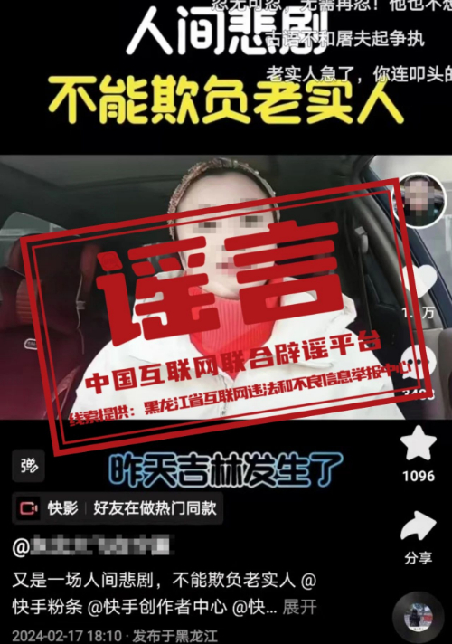 真相:近日,有網(wǎng)民在某視頻平臺發(fā)布視頻稱:“吉林省發(fā)生了一起刑事案件,有一名55歲的屠夫,因為土地矛盾糾紛問題,手持殺豬刀殺害了12個人,屠夫在逃亡途中跑到山林里被警方抓獲?!痹撘曨l內(nèi)容短時間內(nèi)引起公眾大量關(guān)注和討論。經(jīng)警方調(diào)查發(fā)現(xiàn),視頻中所稱案發(fā)地并未發(fā)生此類案件,這則消息純屬子虛烏有,系黑龍江大慶網(wǎng)民呂某為了博取關(guān)注、吸引流量而編造發(fā)布的謠言。目前,大慶市公安機關(guān)已依據(jù)相關(guān)法律法規(guī)對呂某給予行政處罰。(來源:大慶市委網(wǎng)信辦)