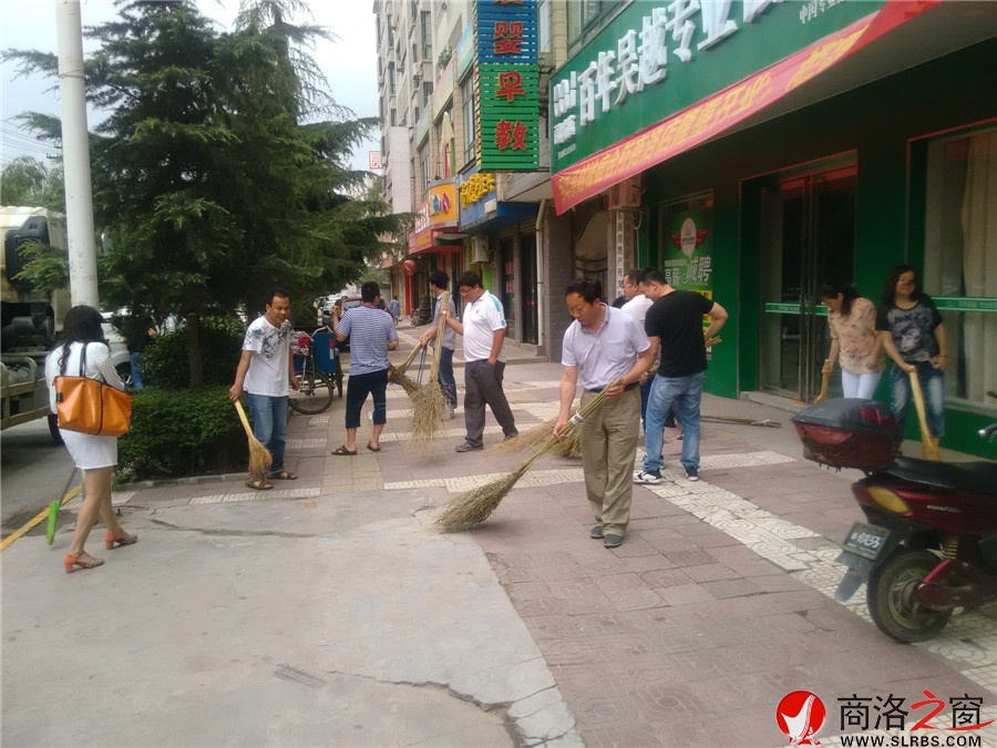 商洛日報社組織職工清潔街道。(支曉宇 李小軍 攝)