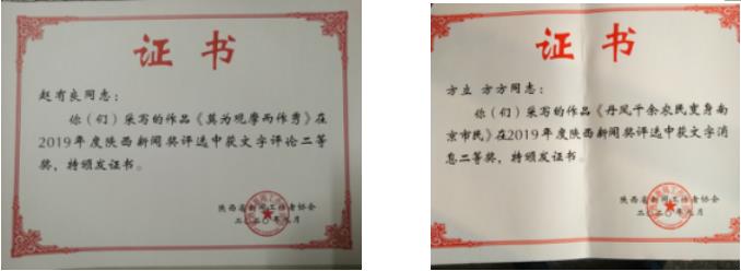 通過(guò)全體采編人員的不懈努力,商洛日?qǐng)?bào)在2020年度新聞獎(jiǎng)評(píng)選中獲得優(yōu)異成績(jī),其中本報(bào)記者方立、方方采寫(xiě)的消息《丹鳳千余農(nóng)民變身南京市民》,趙有良撰寫(xiě)的評(píng)論《莫為觀摩而作秀》獲2019年度陜西新聞二等獎(jiǎng),本報(bào)記者南書(shū)堂、汪锳采寫(xiě)的通訊《從“不堪行”到“變通途”》,本報(bào)記者趙有良、汪锳、賈書(shū)章采寫(xiě)的通訊《一位鄉(xiāng)土作家的“農(nóng)民課堂”》獲2019年度陜西新聞三等獎(jiǎng);《黃河明珠天鵝城》《山鄉(xiāng)婚禮記憶》等5件作品獲2019年度中國(guó)地市報(bào)新聞獎(jiǎng)一、二、三等獎(jiǎng),《我市跨入“國(guó)家森林城市”行列》《全國(guó)最大的數(shù)字化益生元(菊芋)制造中心商州建成》等13件作品獲2019年度商洛新聞獎(jiǎng)一、二、三等獎(jiǎng)。100多篇報(bào)道被“學(xué)習(xí)強(qiáng)國(guó)”平臺(tái)及中、省主流媒體刊發(fā)推送。本報(bào)副總編、主任記者趙有良被陜西省新聞工作者協(xié)會(huì)授予“陜西省優(yōu)秀新聞工作者”稱(chēng)號(hào),并入選陜西省2019年宣傳思想文化系統(tǒng)“六個(gè)一批”人才。
