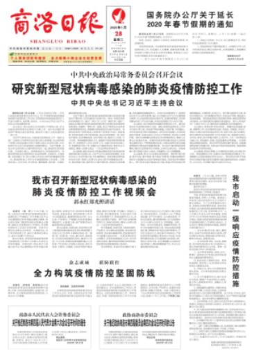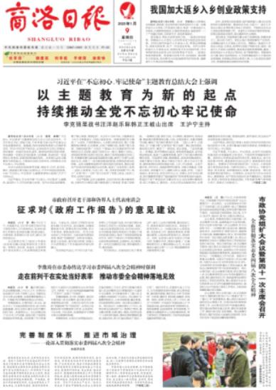 2020年,在中共商洛市委的堅(jiān)強(qiáng)領(lǐng)導(dǎo)下,在市委宣傳部的精心指導(dǎo)下,商洛日?qǐng)?bào)堅(jiān)持以習(xí)近平新時(shí)代中國(guó)特色社會(huì)主義思想為指導(dǎo),以學(xué)習(xí)宣傳貫徹黨的十九大、十九屆五中全會(huì)精神和習(xí)近平總書(shū)記來(lái)陜考察重要講話重要指示精神為主線,緊緊圍繞全市中心工作,著力強(qiáng)化新聞?shì)浾撘龑?dǎo)力、報(bào)業(yè)經(jīng)營(yíng)競(jìng)爭(zhēng)力和新聞隊(duì)伍影響力,全力講好商洛好故事、傳播商洛好聲音,為推動(dòng)全市經(jīng)濟(jì)社會(huì)高質(zhì)量發(fā)展提供了強(qiáng)大的精神動(dòng)力和輿論支持。