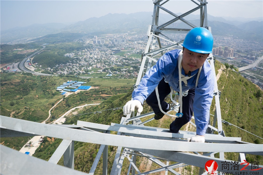 商洛之窗訊  7月30日,在攝氏40°高溫下,陜西商洛供電公司員工在30米高的鐵塔上揮汗作業(yè)。他們奔走在峻嶺之巔的鐵塔上、銀線間,用勤勞和勇敢“編織”著輸送光明的電網。