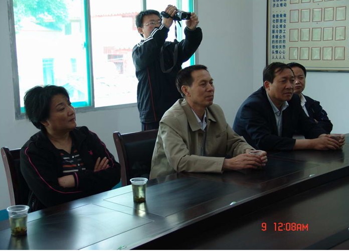 市環(huán)保局黨組書記、局長(zhǎng)翁同德(左二)、黨組成員、副局長(zhǎng)袁 娜(左一)、黨組成員、紀(jì)檢組長(zhǎng)閆緒民聽取東川鎮(zhèn)黨委和鄭家莊村委會(huì)匯報(bào)全村經(jīng)濟(jì)社會(huì)發(fā)展情況。