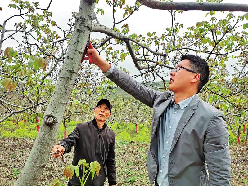 開始給村民培訓(xùn)時(shí),靦腆的胡刁難掩“學(xué)生氣”,加上他講的一些專業(yè)術(shù)語,在場群眾并沒有多少能聽進(jìn)去。“從他們一臉茫然的表情我就看出來了,越緊張?jiān)街v不好。”胡刁坦言,一開始自己是個(gè)生手,而且不接地氣,所以收效甚微。為了使培訓(xùn)效果達(dá)到最佳,胡刁一改往日的“書卷氣”,卷起袖子跟著村民一遍遍地往核桃園里跑,在一次次的真情交流中,他和村民的距離越來越近,講課也漸漸接地氣,喜歡聽他講課的人越來越多,重視科管的村民也越來越多。