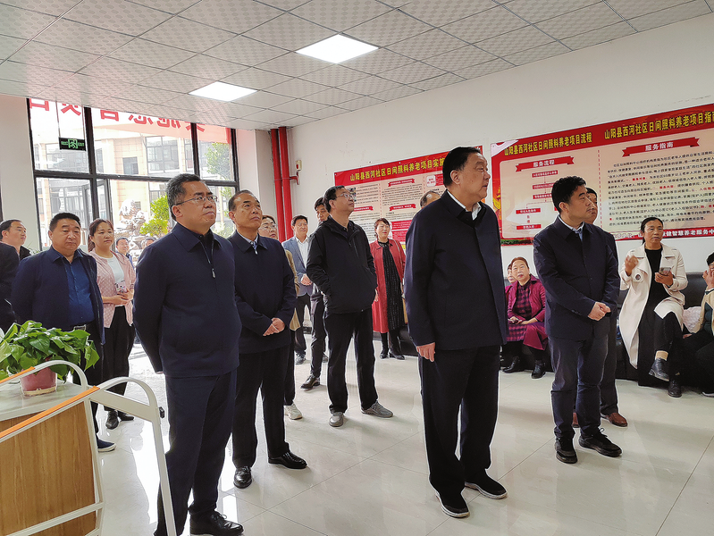 2023年4月12日,省人大常委會原副主任、省慈善協(xié)會會長吳前進在山陽縣檢查慈善幸福家園。