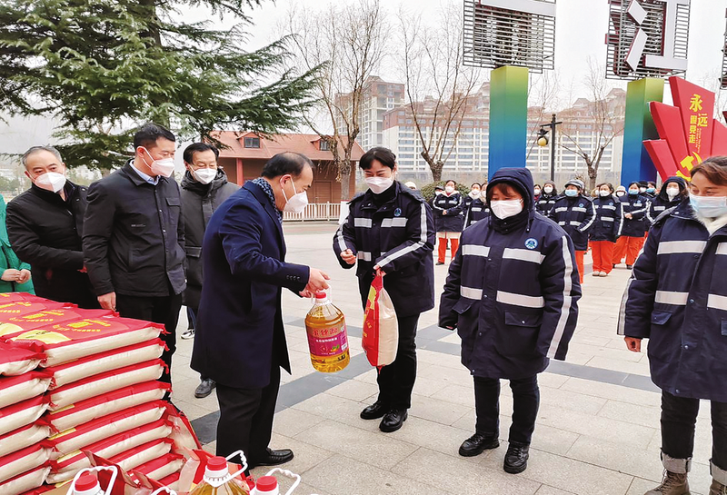 2023年1月13日,市慈善協(xié)會會長李選良為環(huán)衛(wèi)工發(fā)放春節(jié)慰問品。