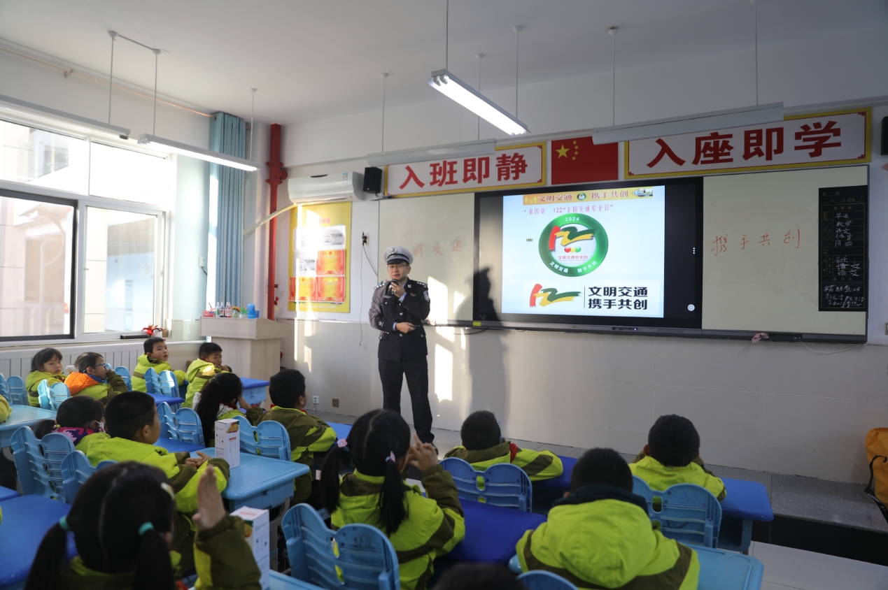 活動伊始,交警支隊宣傳科科長劉見為同學們帶來了一場生動有趣的交通安全知識講座。通過播放精心制作的 PPT 和視頻短片,結合實際案例,深入淺出地講解了交通信號燈、標志標線的含義,以及如何安全過馬路、安全乘車等知識。同學們聽得聚精會神,積極互動,現場氣氛熱烈。