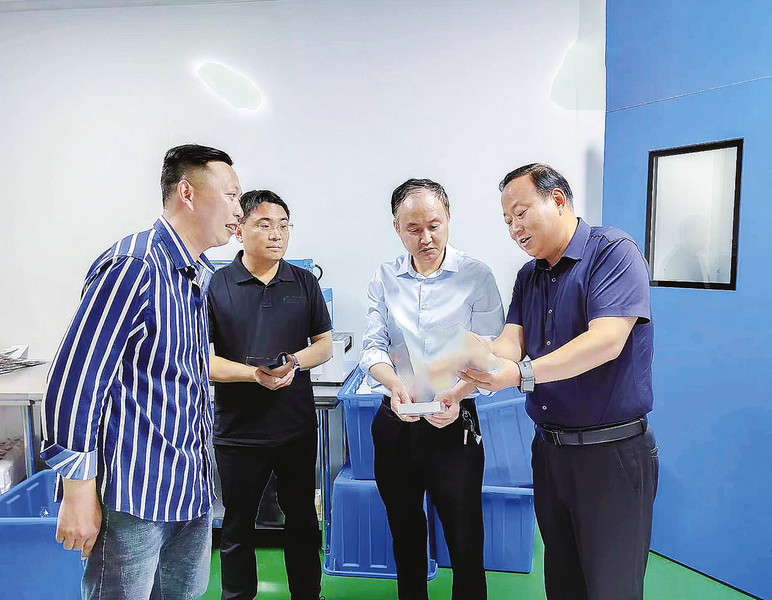 8月25日,市市場監(jiān)管局黨組書記、局長成小斌(右二)到化妝品生產(chǎn)企業(yè)調(diào)研。