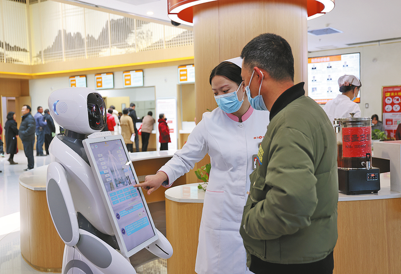 2025年2月26日,商洛市中醫(yī)醫(yī)院新門(mén)診樓大廳引進(jìn)智能機(jī)器人“加加”。